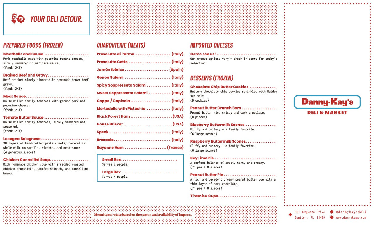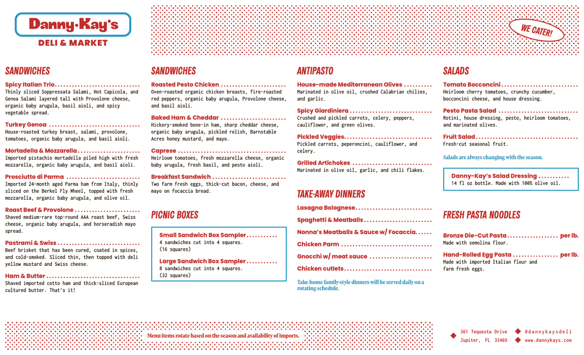Danny-Kay's in Tequesta is a home run. The prosciutto di Parma sandwich was perfection - rich, balanced, unforgettable. The espresso hit just right, and the pastries were top-notch. Phil took great care of us - welcoming, sharp, and genuinely kind. Shelves are stocked with real-deal Italian specialty goods. A place that feels like home, only better.
